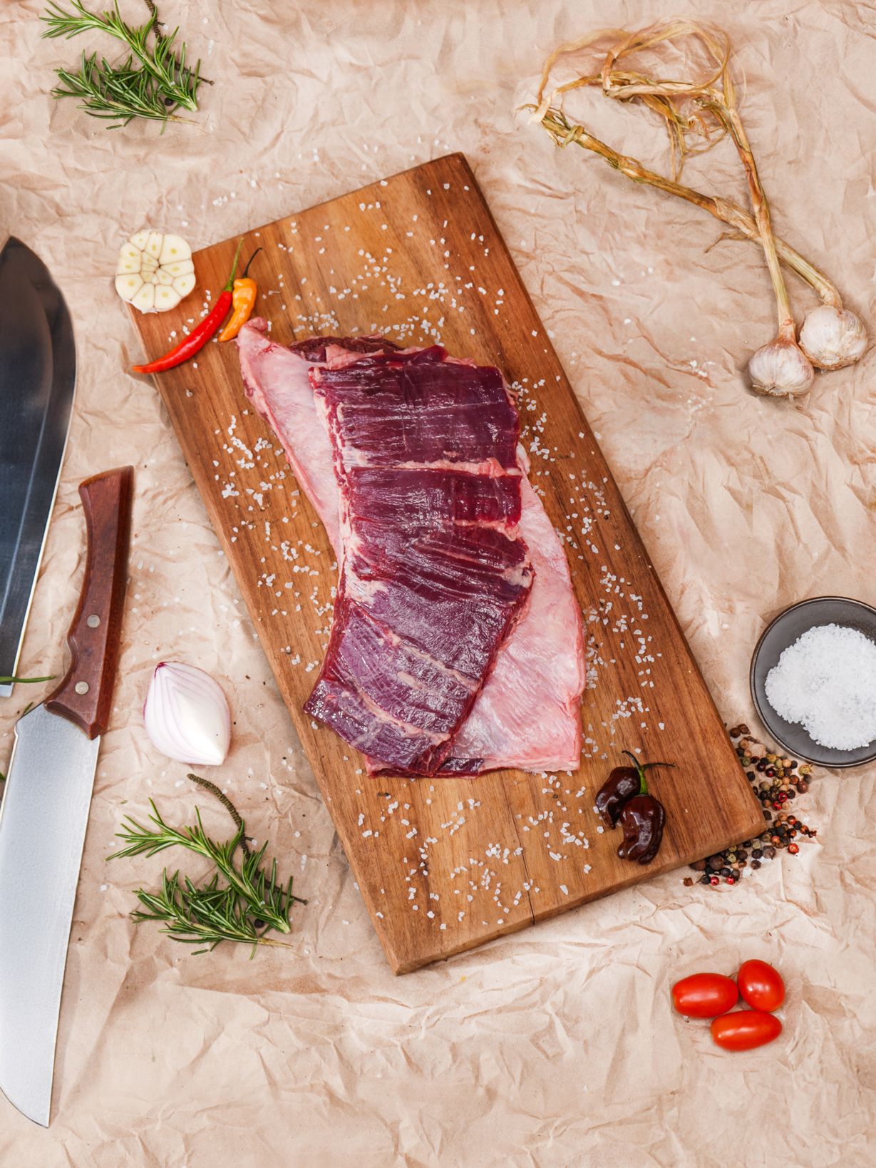 Corte primario: PLATE / Diafragma de la res, en la zona del pecho y abdomen.